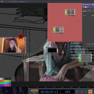 capturas de ecrã de interface do Touchdesigner_captação de gestos e vídeos correspondentes no fundo